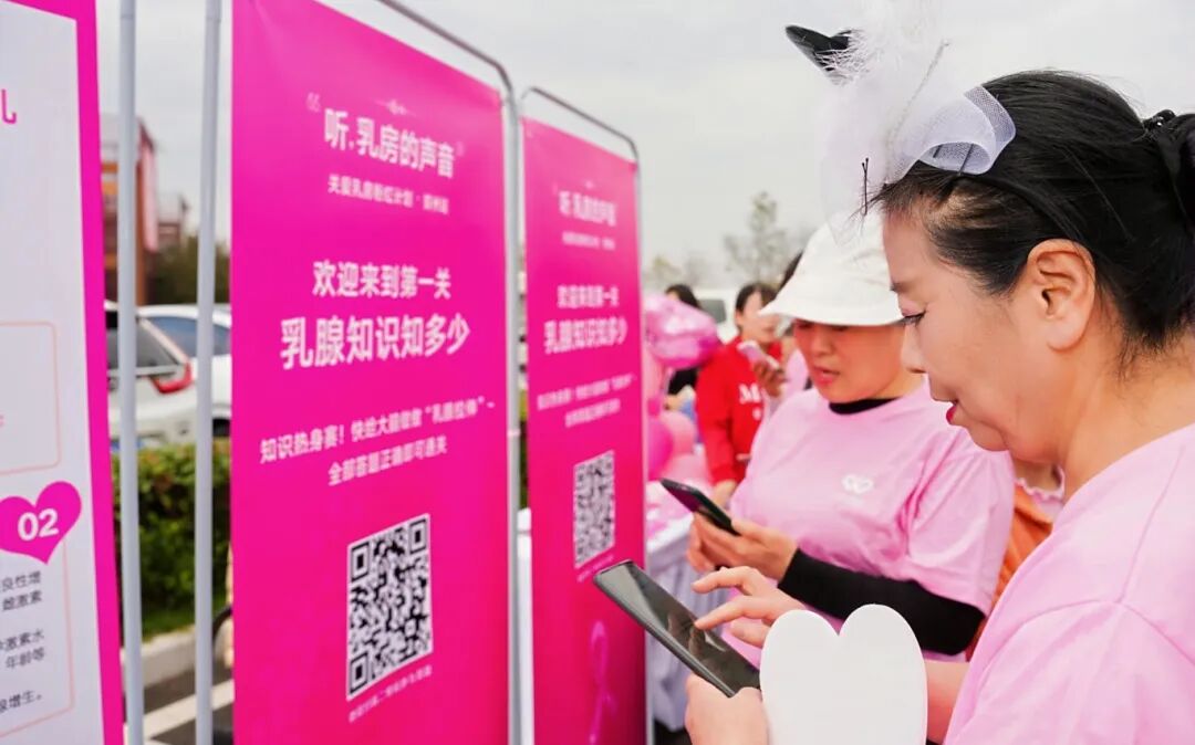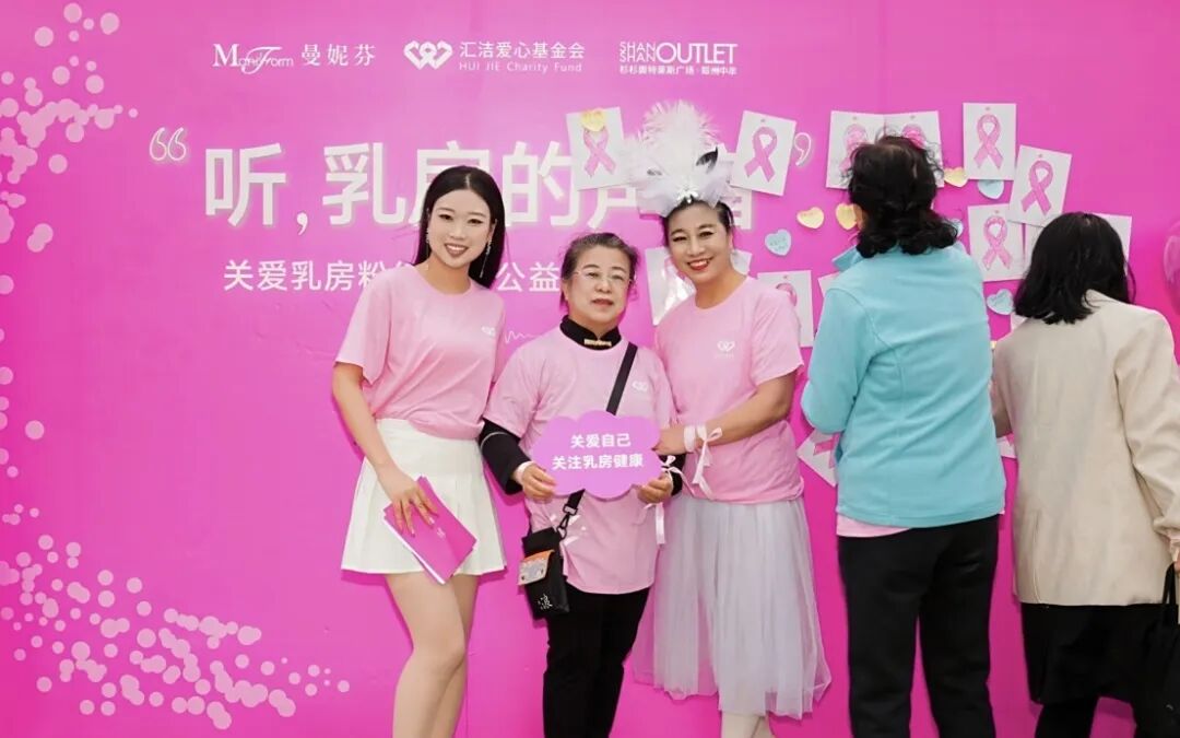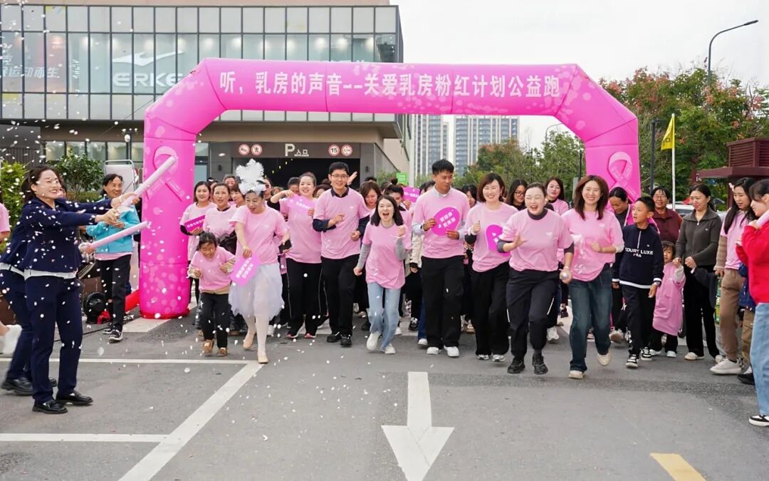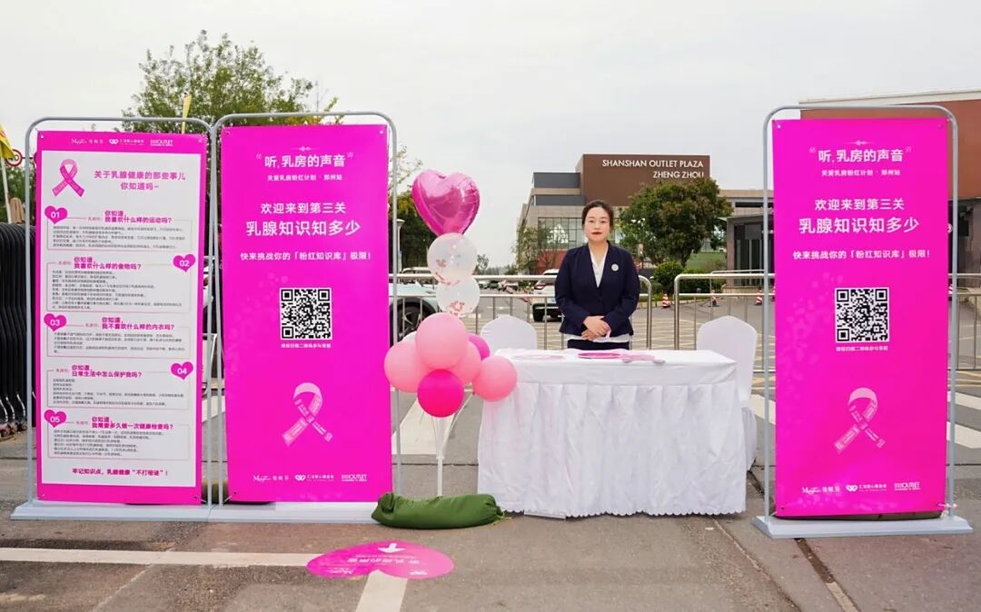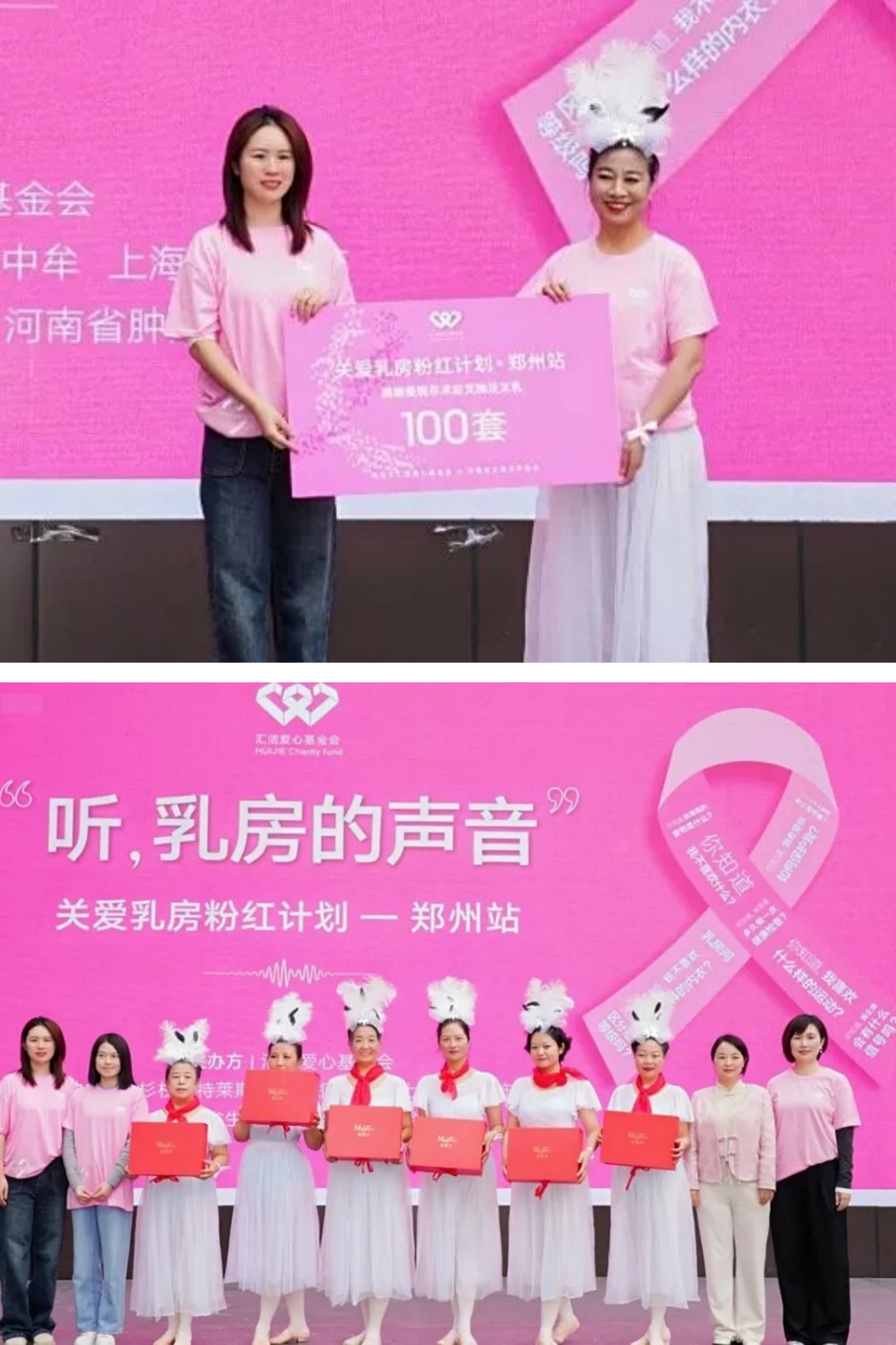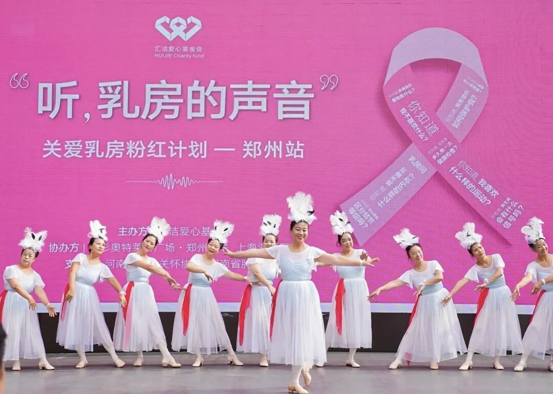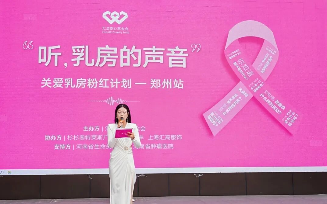 10月18日,汇洁爱心基金会携手上海汇高服饰、郑州杉杉奥莱中牟店、河南省生命关怀协会及河南省肿瘤医院联合开展“听,乳房的声音”粉红丝带月公益活动。当天活动设有捐赠仪式、粉红公益跑、乳腺科普、专家义诊、量体试穿等多个环节。这不仅是一场公益活动,更是一次生命与生命之间温暖的共振。