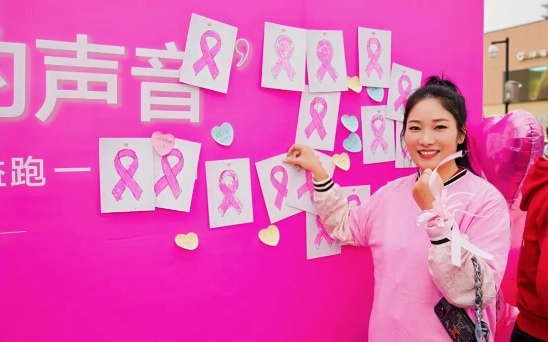 粉红爱心墙,则是粉红跑最具温度的坐标。绘制好的粉红丝带,手写的粉红祝福,温柔的汇聚在一起,让每一份心意被看见,被传递。